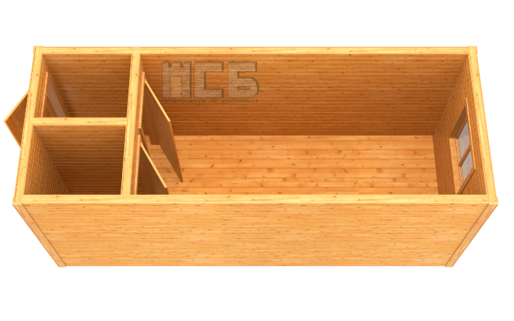 | Входная дверь | Каркасная, снаружи оббита вагонкой, с ручками и проушинами под навесной замок | |