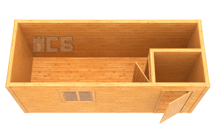 | Входная дверь | Каркасная, снаружи оббита вагонкой, с ручками и проушинами под навесной замок | |